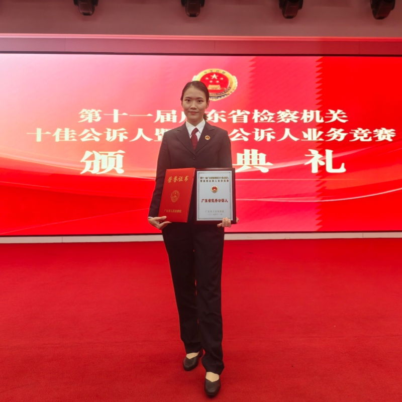 第二市区检察院邬婷获评“广东省十佳公诉人提名奖”和“广东省优秀公诉人”
